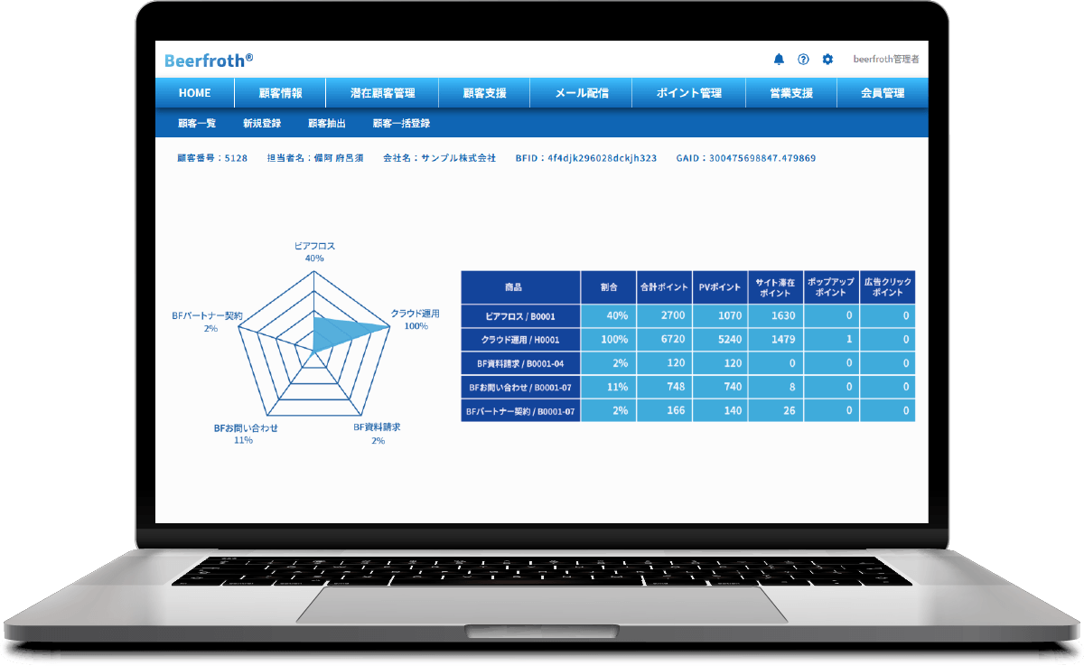 蓄積された顧客データを分析し、購買意欲の高い見込み顧客を抽出。メール配信やポイント管理による関係強化も支援します。