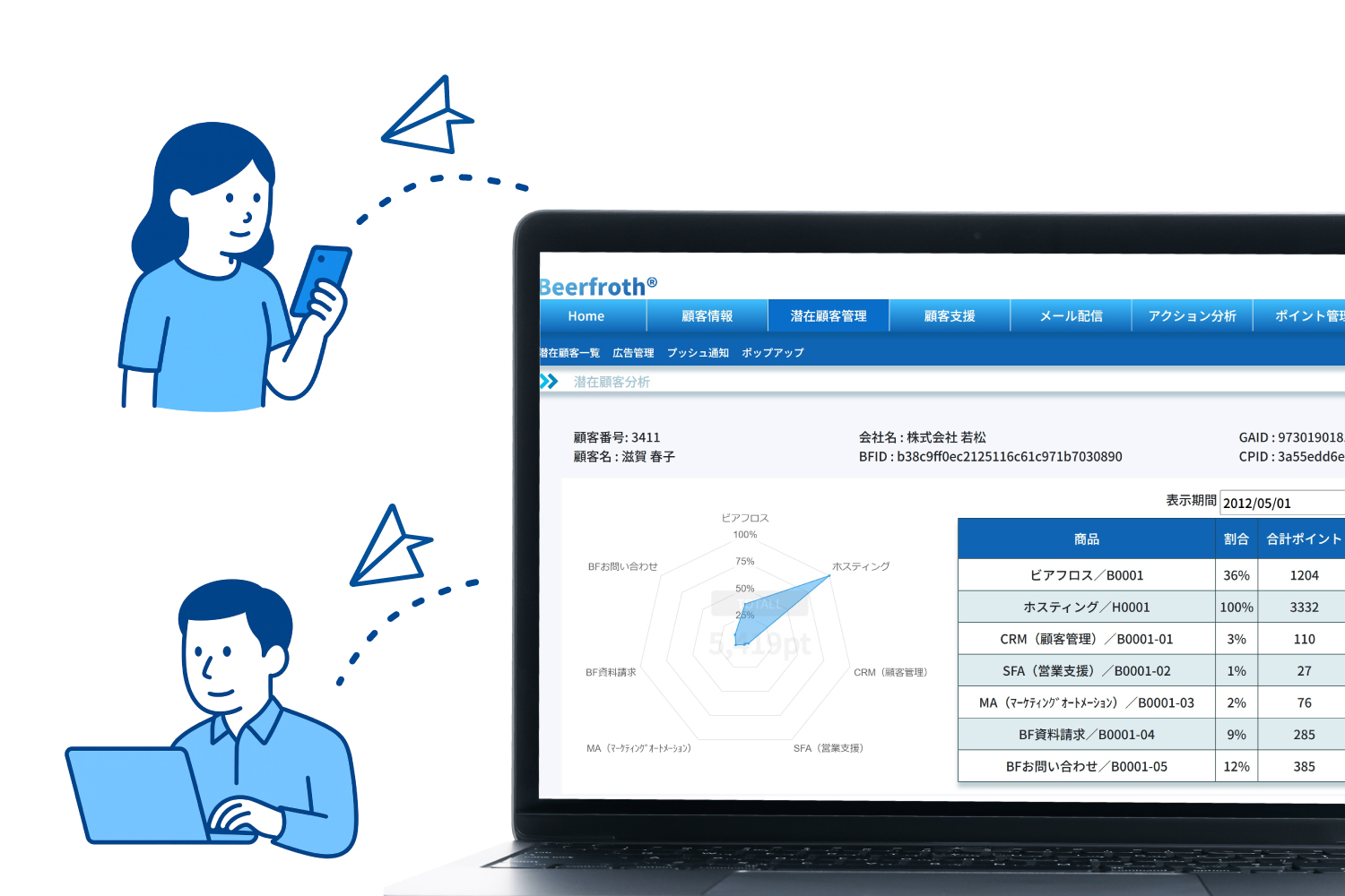 メール配信によって有効な情報を提供しながら、クリック傾向などをポイントとして蓄積・管理することで、営業すべきタイミングと提案内容を的確に判断できます。