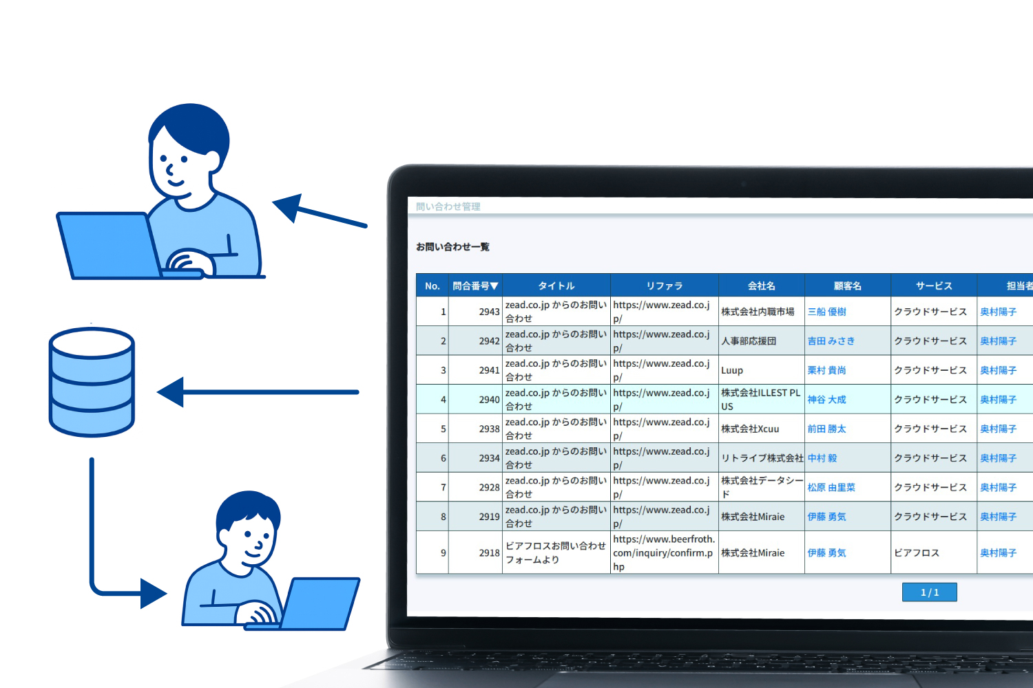 WEBサイトにJavaScriptを設置するだけで、問い合わせフォームの送信内容を自動でデータベース化。