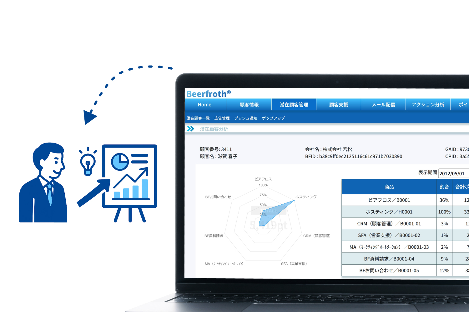 顧客のインテントデータをもとに、関心領域や検討状況を分析。