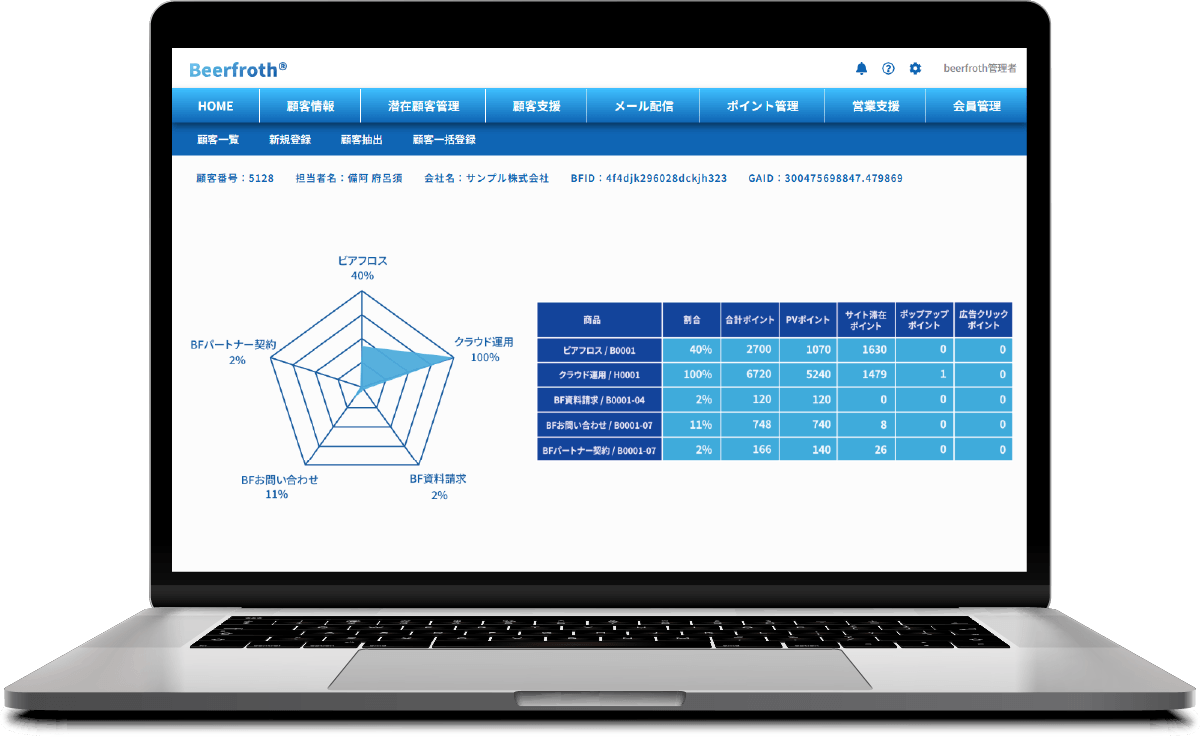アクセス分析により潜在顧客の動向を可視化し、広告管理画面からバナー表示や通知設定を行うことで、効率的な情報発信が可能です。