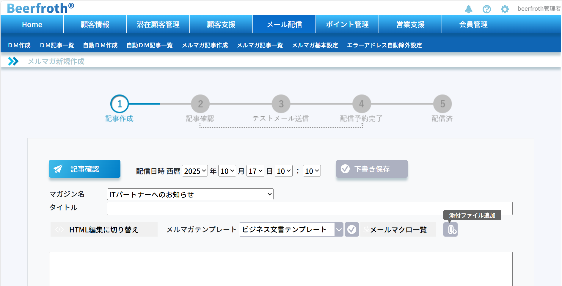 配信するメールに、画像やエクセルで作ったデータなどを添付して送る事が出来ます。