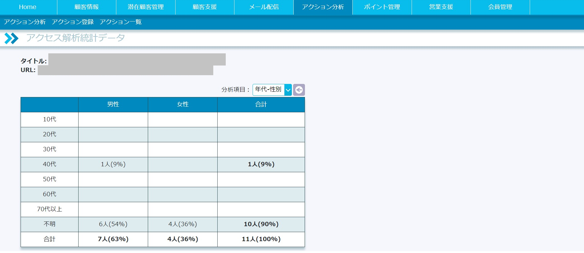 各アクションの右側にある「一覧」「統計」の各リンクでそのアクションの効果を見ることができます。「一覧」を選択すると、アクションをクリックしたユーザー名を一覧で表示します。「統計」をクリックすると、そのアクションの統計データを表示します。