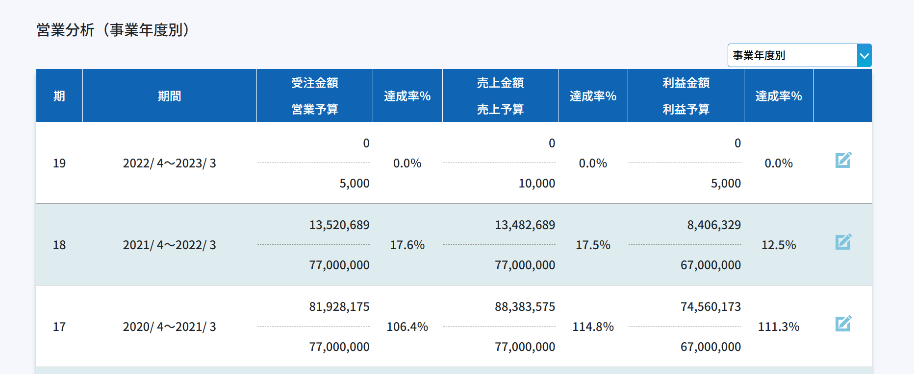 営業分析(事業年度別)