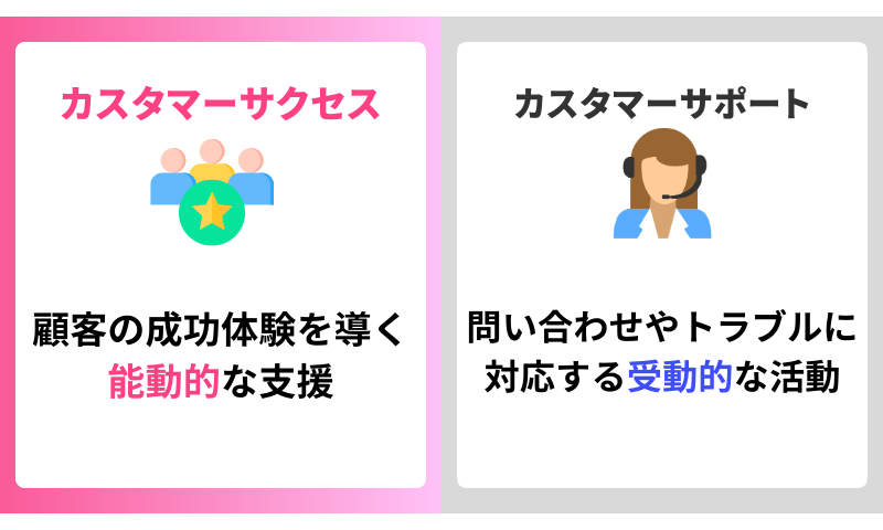 カスタマーサクセスとカスタマーサポートは、いずれも顧客との接点を持つ重要な役割を担いますが、そのアプローチや目的には大きな違いがあります。
